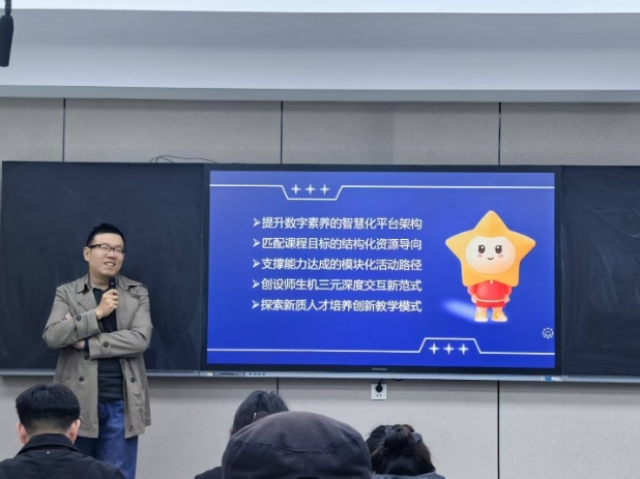 为贯彻落实国家教育数字化战略部署,推动人工智能技术与教育教学深度融合,黄色网站 教师发展分中心于2025年3月31日成功举办“图谱为基 AI赋能 智慧课程建设与应用”专题报告会。活动特邀超星教育研究院高级研究员朱从浩担任主讲嘉宾,各系主任、教研室主任及骨干教师共聚一堂,共探教育数字化转型新路径。