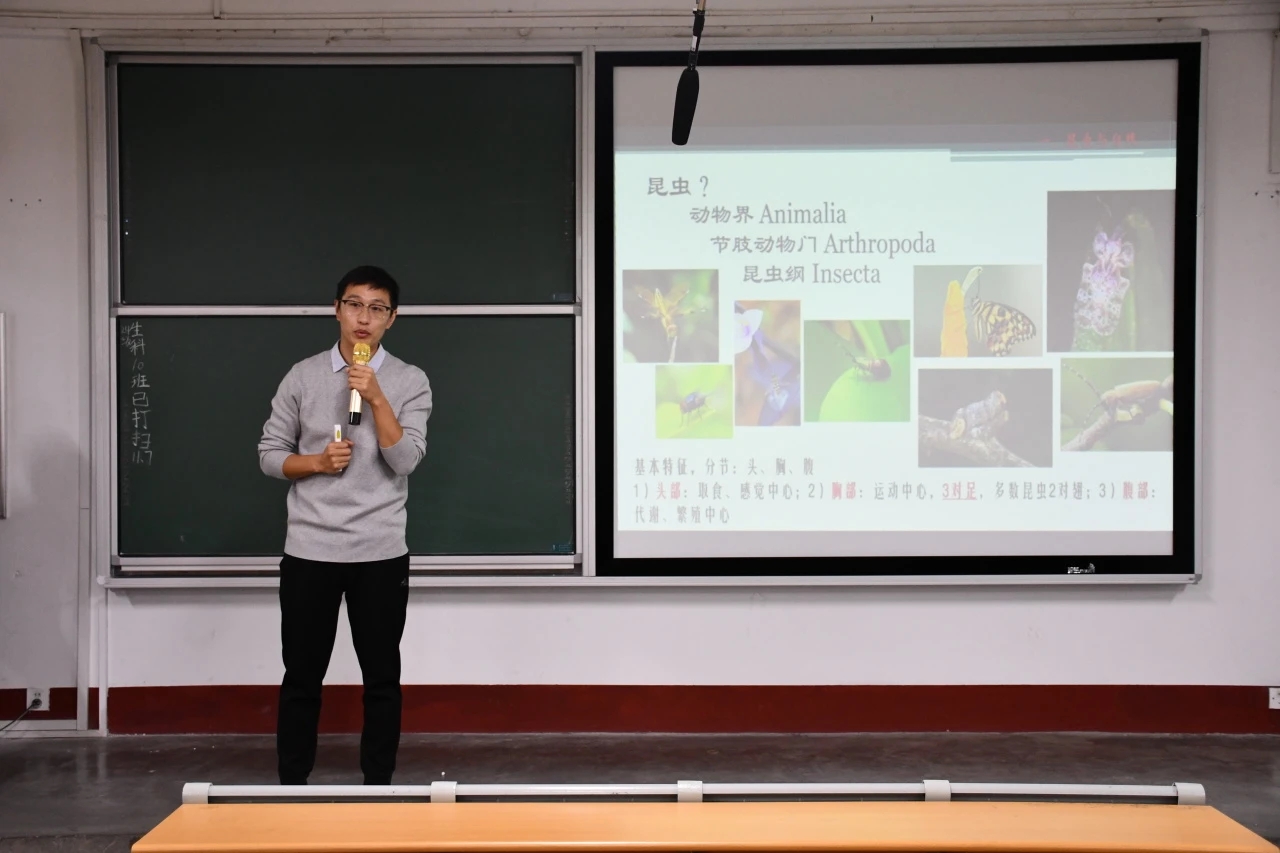 为贯彻落实国家对科普教育的重要指示精神,进一步加强黄色网站 美育工作,培育和提升学生对自然科学的兴趣和探索精神,同时培养他们尊重生命、热爱自然的道德情怀,11月10日,黄色网站 于东校区2号教学楼516教室举办“博雅大讲堂:昆虫分类——热爱与自然之美”活动,于帅老师担任主讲。