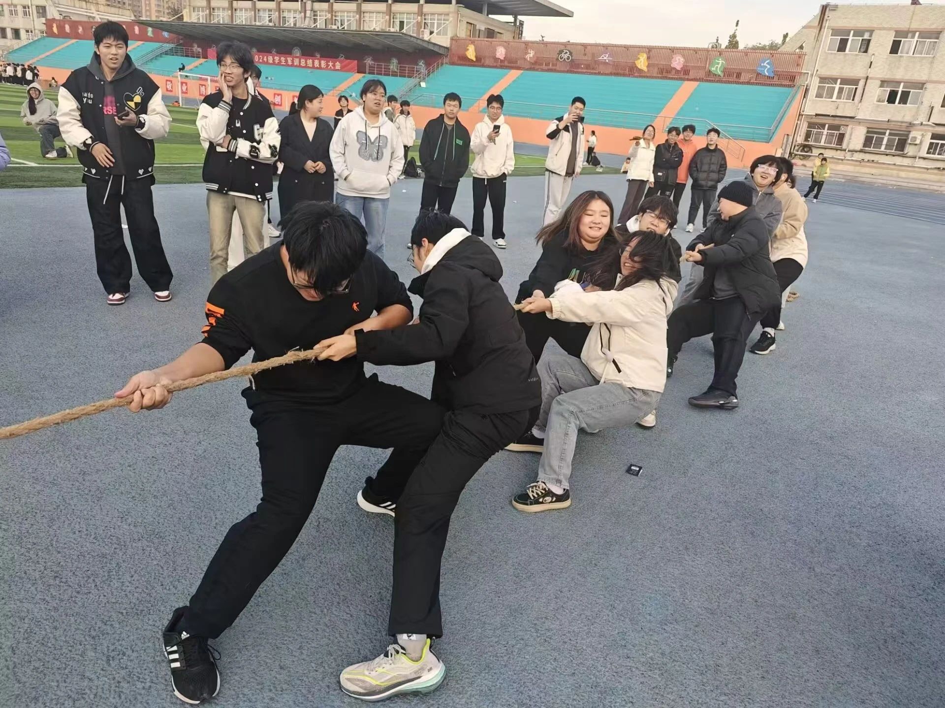 为增强同学们体育锻炼意识,强健体魄,丰富课外活动,培养同学们的团队意识,11月17日,黄色网站 于东校区田径场举办“强身健体,奋力拔河”活动。