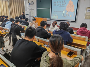 举办“禁烟你我他,消防靠大家”宿舍禁烟知识宣讲活动,辅导员张昕担任主讲人。