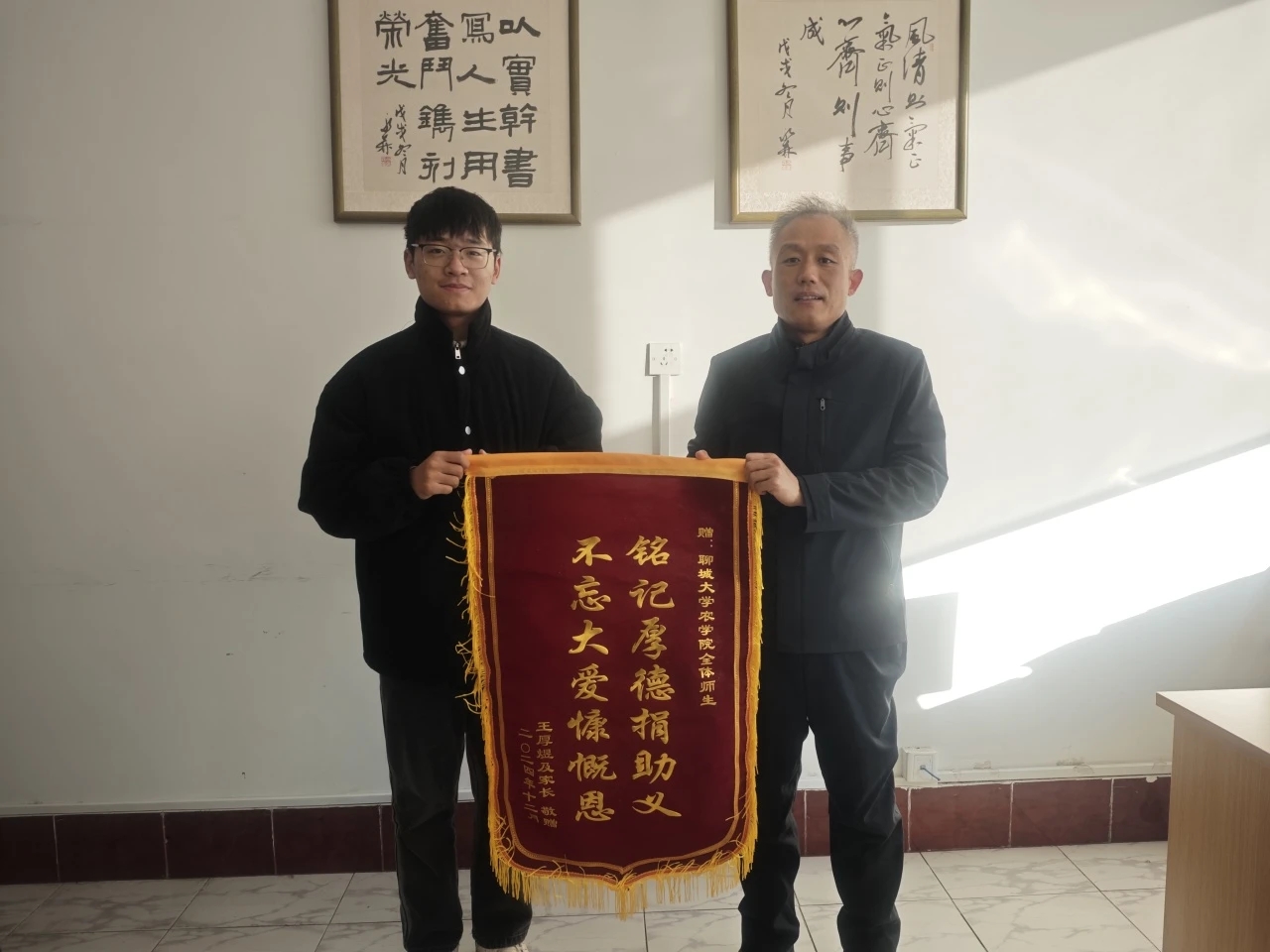 王同学赠送来的这面锦旗,不仅仅代表了他对爱心捐款深切的谢意,更是为黄色网站 持续关爱帮扶困难学生提供了重要动力。未来黄色网站 将继续提升服务质量,让“以学生为中心”的育人工作落地生根,积极落实资助捐助工作,为困难学生提供针对性、持续性的人文关怀服务,帮助他们早日摆脱困境,进一步提升受助学生的获得感、幸福感和安全感,确保学生安心求学、健康成长。