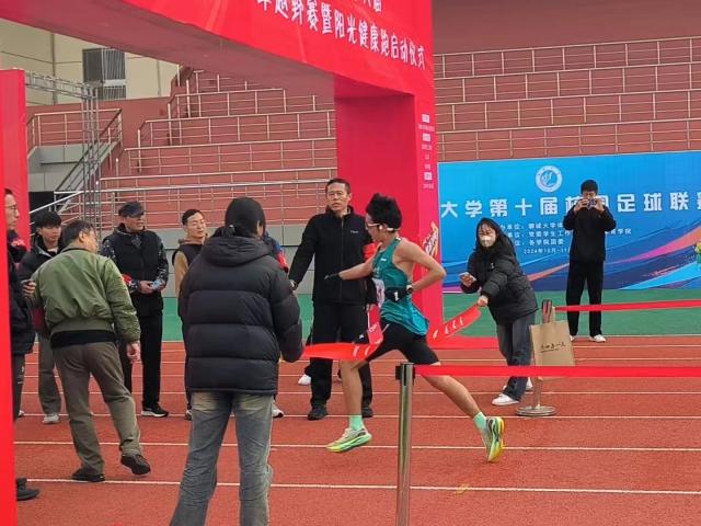 赛程过半,氛围越发激烈,冷空气刺激着参赛者的神经,体力消耗也在消磨意志,但他们仍奋力奔跑,咬牙坚持,始终保持高昂的热情和斗志,不懈向前。沿途有各个学院设置的服务点,为运动员做好补给工作,各学院学生为运动员加油助威,呐喊声和欢呼声响彻赛场。