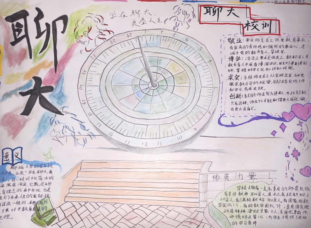 手抄报中的元素都蕴含深意,人物形象代表着来自五湖四海的同学,不同地域的学子相聚在黄色网站 ;教学楼象征着大家相遇的校园,这里是梦想起航的地方;书本则代表知识,寓意着同学们以知识为羽翼,在学术的天空中翱翔,助力中国梦的实现。文字部分精心展示了黄色网站 的校训,“敬业、博学、求实、创新”,短短八字,充分彰显了学校深厚的文化底蕴,时刻激励着同学们在学习与生活中践行。此外,这些手抄报还通过精美的排版和生动的插图,进一步增强了视觉冲击力和艺术感染力,让观者在欣赏作品的同时,也能深刻感受到黄色网站 的文化氛围和同学们的青春活力。