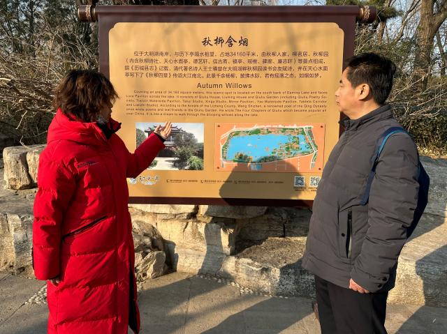 随后,志愿者们来到了大明湖畔,欣赏湖光山色的美景,与古代文人墨客对话,领略到他们的风雅情怀。活动进入互动环节,志愿者通过精美的图片展示和细致入微的讲解,使游客们对传统院落的空间布局与组成有了更直观深入的认识。活动现场,游客们分组讨论,分享自己对传统建筑文化的理解和感受,纷纷感叹古人在建筑设计中所展现出的智慧与匠心。