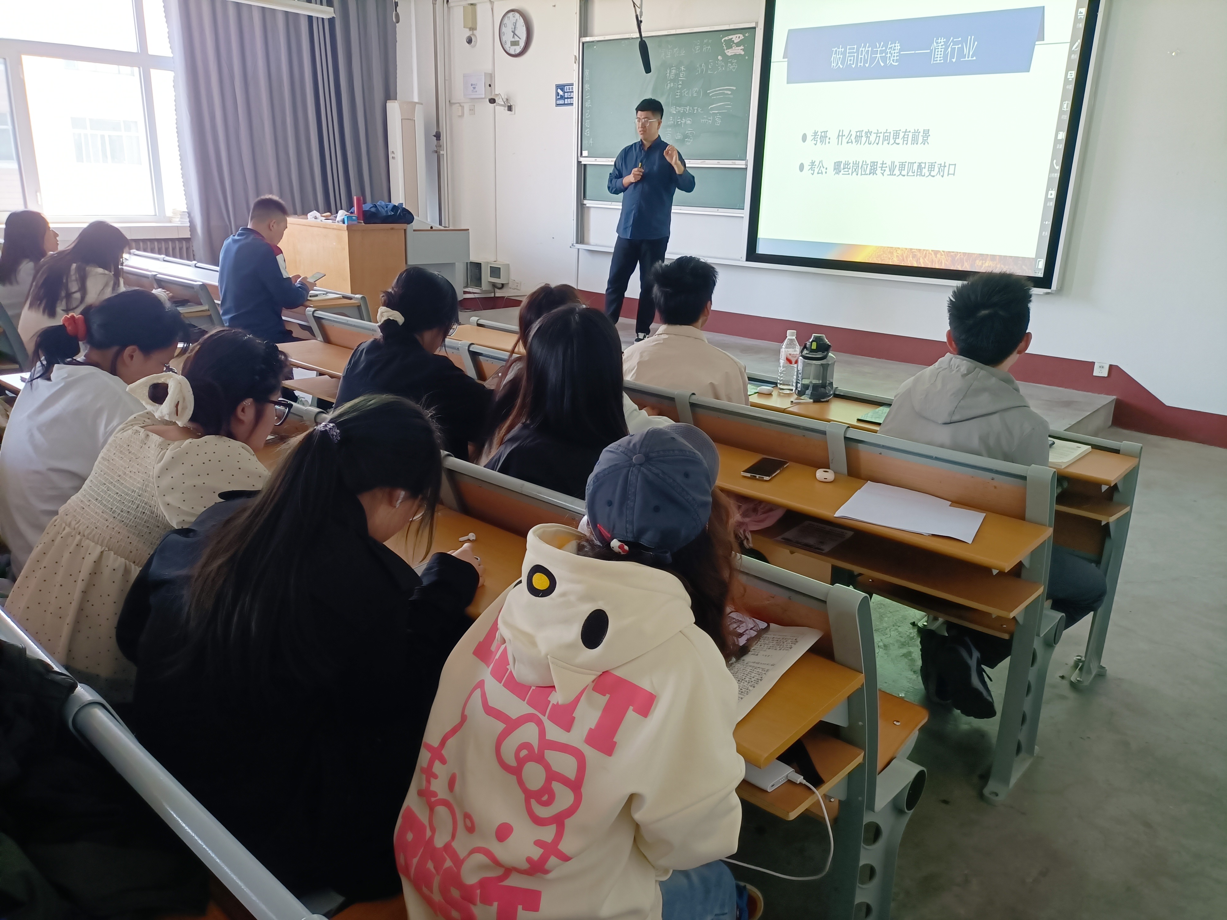 活动伊始,梁贵松针对当前有关农生科技领域求职市场中简历同质化现象,指出破局关键在于“懂行业”。由此,他提出“两个选择”理念,引导同学们思考毕业后应选择考研还是考公,并深入剖析实习经历对就业竞争力的重要性。他强调,个性化简历需突出个人在专业领域的独特见解与实践成果。以现代农业技术应用为例,规范的实习过程既能帮助学生系统掌握专业技能,又能培养解决实际问题的能力,这类经历将成为研究生复试或职场应聘的重要优势。