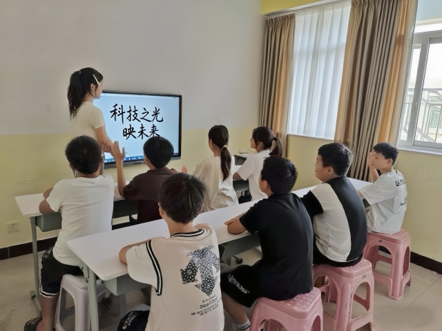 活动中,服务队创新采用“沉浸式科普+互动式引导”模式,让科技知识“看得见、听得懂、能参与”。首先,队员们以一段前沿科技成果视频拉开序幕——人工智能的智慧应用、航天探索的壮阔图景,瞬间抓住孩子们的目光。随后,队员们用“农田里的‘千里眼’”解释物联网监测,以“超市里的智能计价”讲解大数据应用,把抽象的科技原理转化为孩子们熟悉的日常场景。