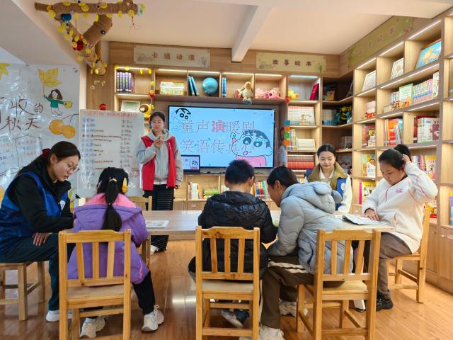 活动伊始,志愿者们精心筛选适配儿童认知的经典童话片段,将剧本改编得更具互动性与趣味性,同时准备了色彩鲜艳的简易道具,为小朋友们打造沉浸式表演氛围。另外,活动现场还设置了“情感小课堂”热身环节,志愿者通过模仿小动物表情、传递情绪卡片等小游戏,引导小朋友们学会用简单的语言和动作表达内心感受,为后续的剧本演绎做好铺垫。接下来,通过PPT展示童趣盎然的童话小剧本,让小朋友们对剧情先有了大致认知。朗读剧本时,志愿者自然抛出“故事将如何发展”的提问,引导大家专注聆听、共同探索,现场小朋友踊跃发言,互动氛围热烈又轻松。故事演绎环节中,志愿者鼓励小朋友大胆尝试,自主挑选喜爱的角色参与表演,小朋友们用生动又充满童趣的演绎,展现出对剧本故事的独特理解。