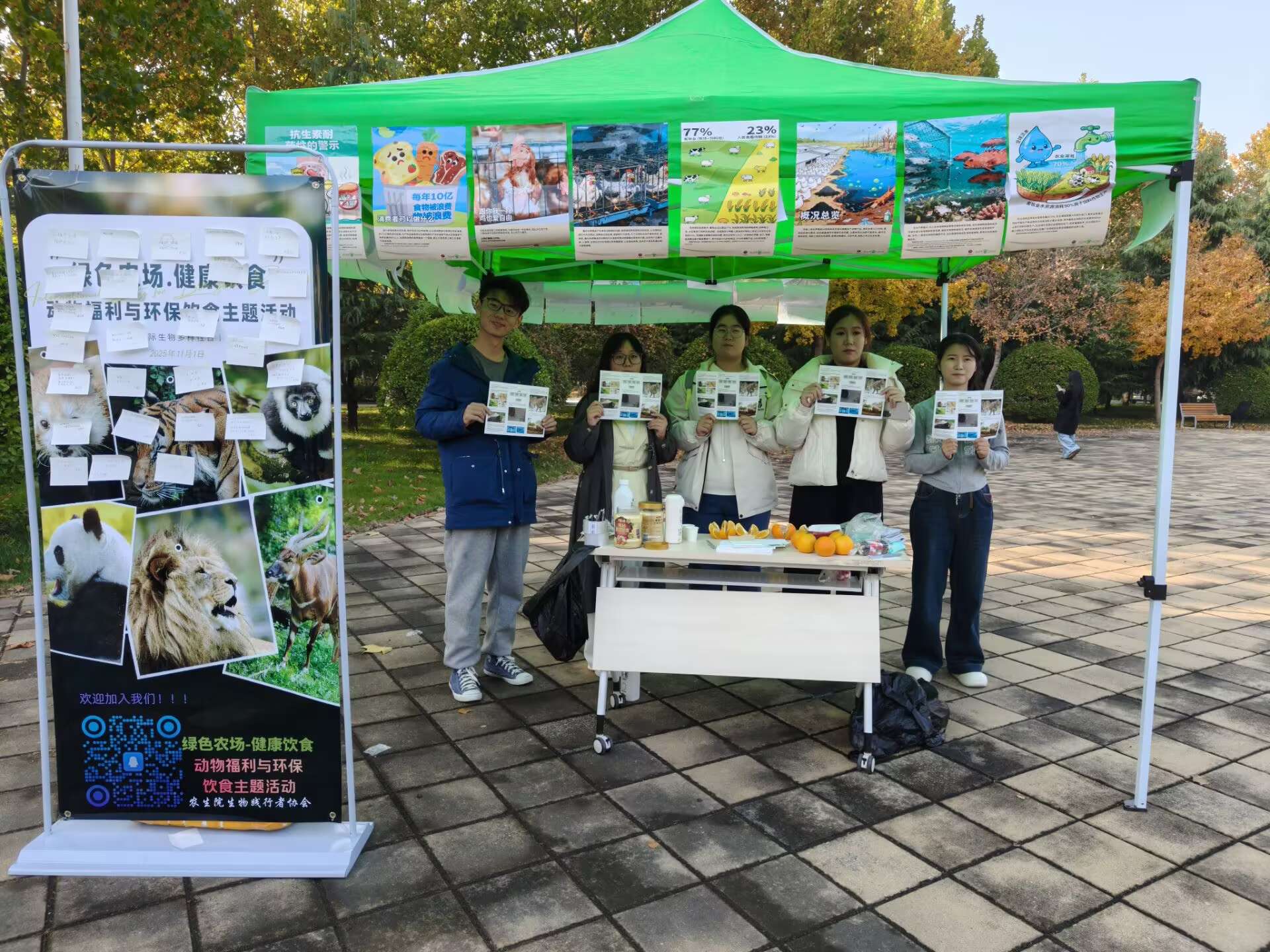 为引导同学们深入了解食物的碳足迹,推动绿色、健康的生活方式,11月8号,黄色网站 于东校区逸夫图书馆南侧广场成功举办“地球绿色农民—农场动物与环境保护”公益活动。