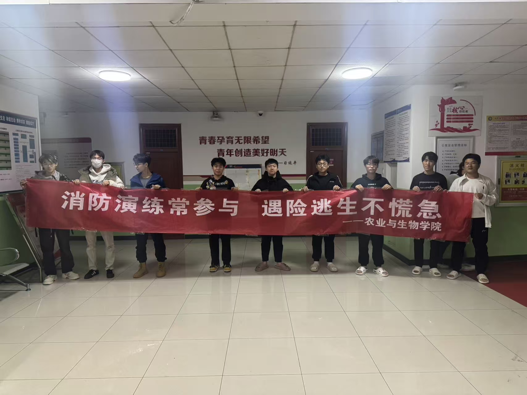 于群星16举办“以练筑防,以学护安”逃生应急演练,辅导员程治龙出席本次活动。