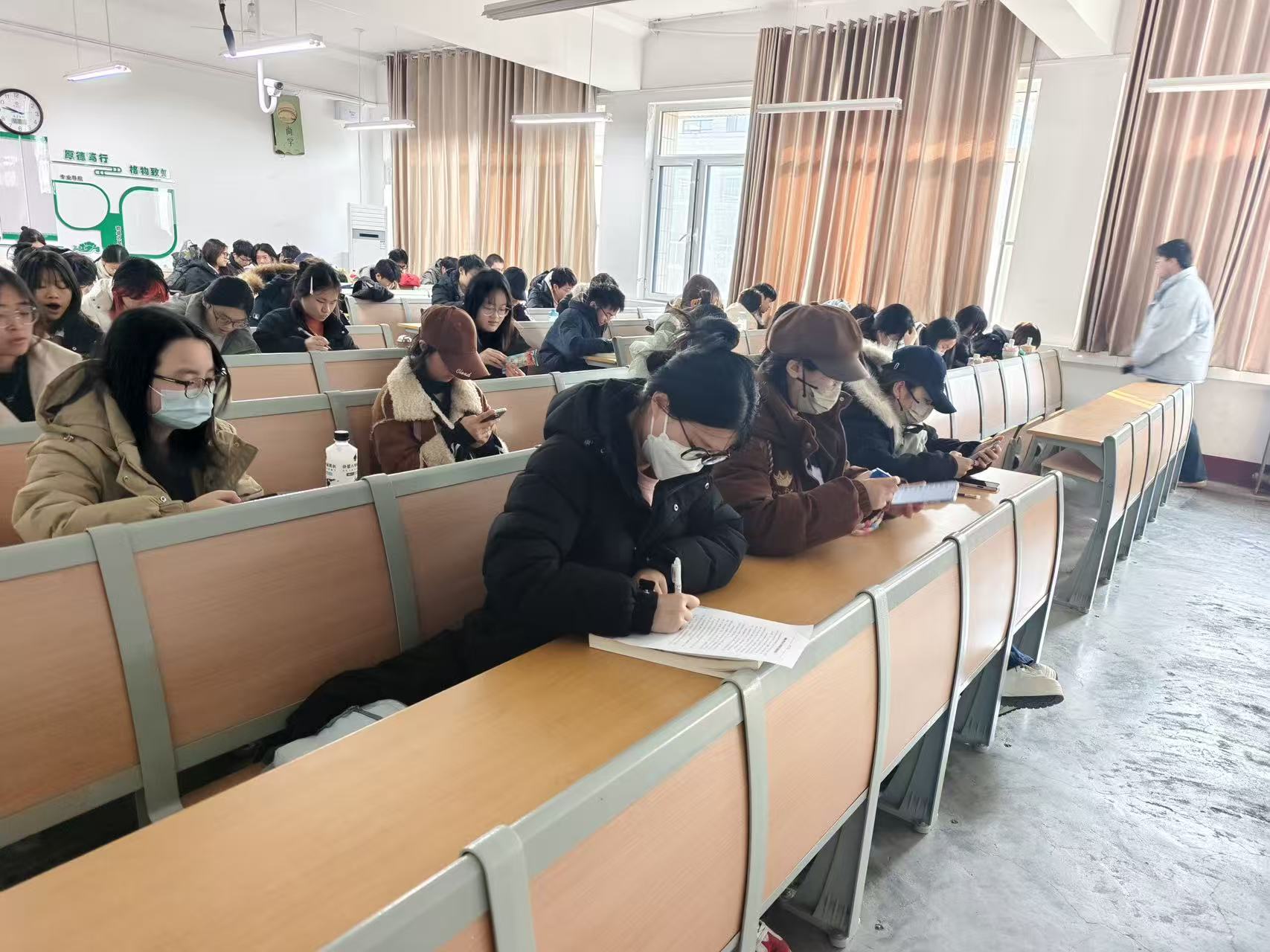随后,学院以班级为单位,有序组织学生签署《诚信考试承诺书》。承诺书明确规定,考生须自觉遵守考场纪律,坚决杜绝任何形式的违规舞弊行为,不协助他人违反考试规定,并承诺以真实学业水平接受检验。签署现场井然有序、气氛庄重,同学们郑重签署姓名,许下对学术诚信与个人品格的严肃承诺。