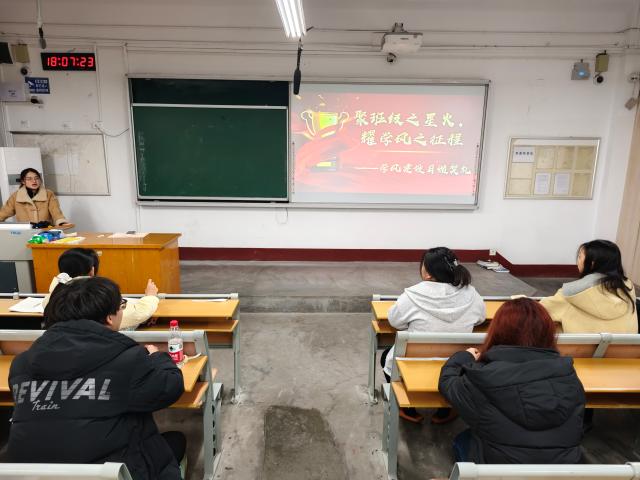 活动伊始,张玉莹对学风建设月的各项工作进行简要总结。她指出,自学风建设月启动以来,学院围绕“铸思想、树榜样、强规范、践笃行、创品牌”五个维度协同发力,通过系列主题活动,着力营造“乐学、善学、笃学”的浓厚学习氛围。在全院师生的共同努力下,学风建设已取得阶段性成效,学生到课率、前排就座率及课堂参与度等情况明显改善,学风氛围持续向好。