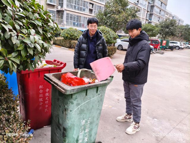 在公共区域,大家认真清理地面垃圾、角落杂草和墙壁小广告。面对难以清理的小广告,志愿者用工具耐心铲除,对于草丛中的垃圾,大家徒手清理,不放过任何卫生死角。在绿化带内,志愿者仔细检查并清理落叶和杂物,一些居民也主动加入,他们用小耙子将落叶聚拢成堆,再由志愿者统一运走。同时,志愿者们还向周围居民普及环保知识,比如讲解垃圾分类的重要性以及如何正确养护绿植,引导居民养成良好的环保习惯。