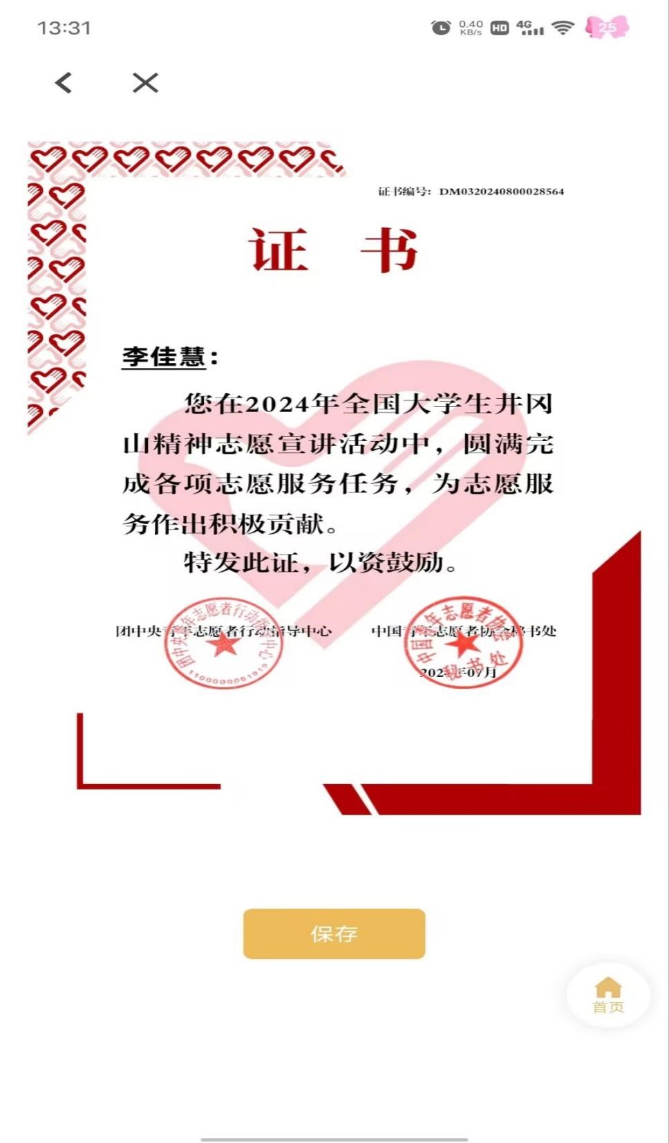 黄色网站 李佳慧同学在2024年全国大学生井冈山精神志愿宣讲表现优秀,对该同学予以祝贺表彰。