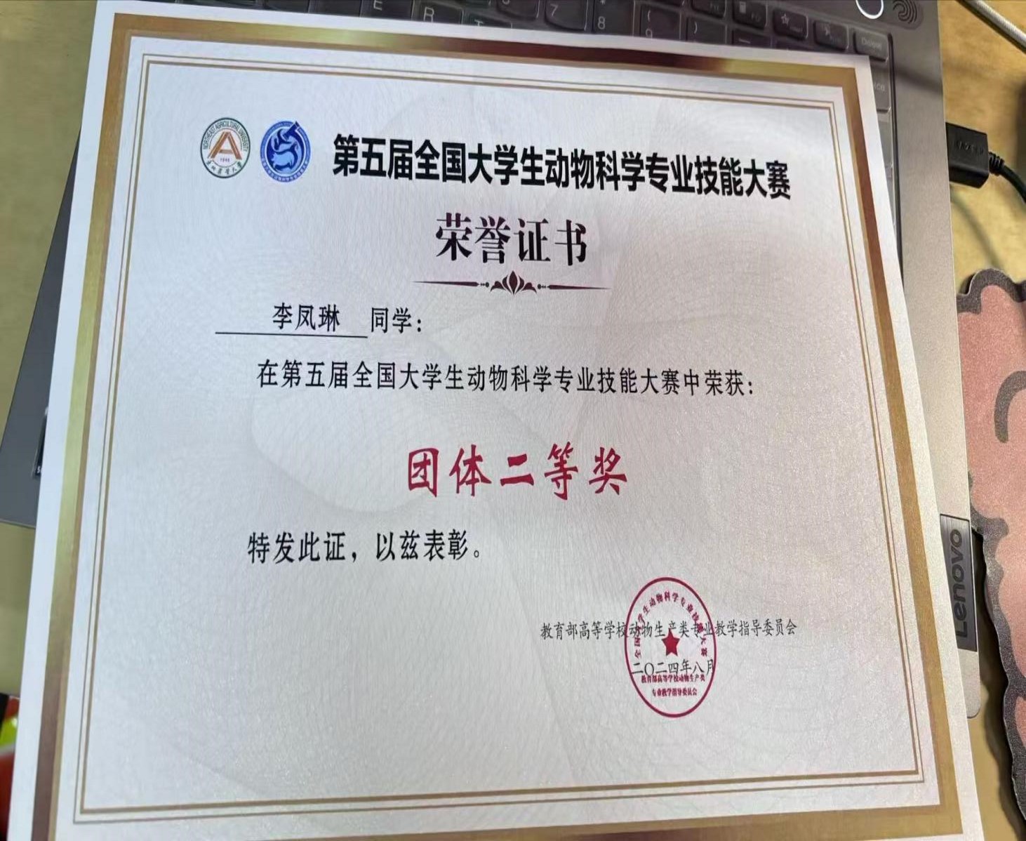 黄色网站 李凤琳同学在第五届全国大学生动物科学专业技能大赛中荣获二等奖,对该获奖同学予以祝贺表彰。