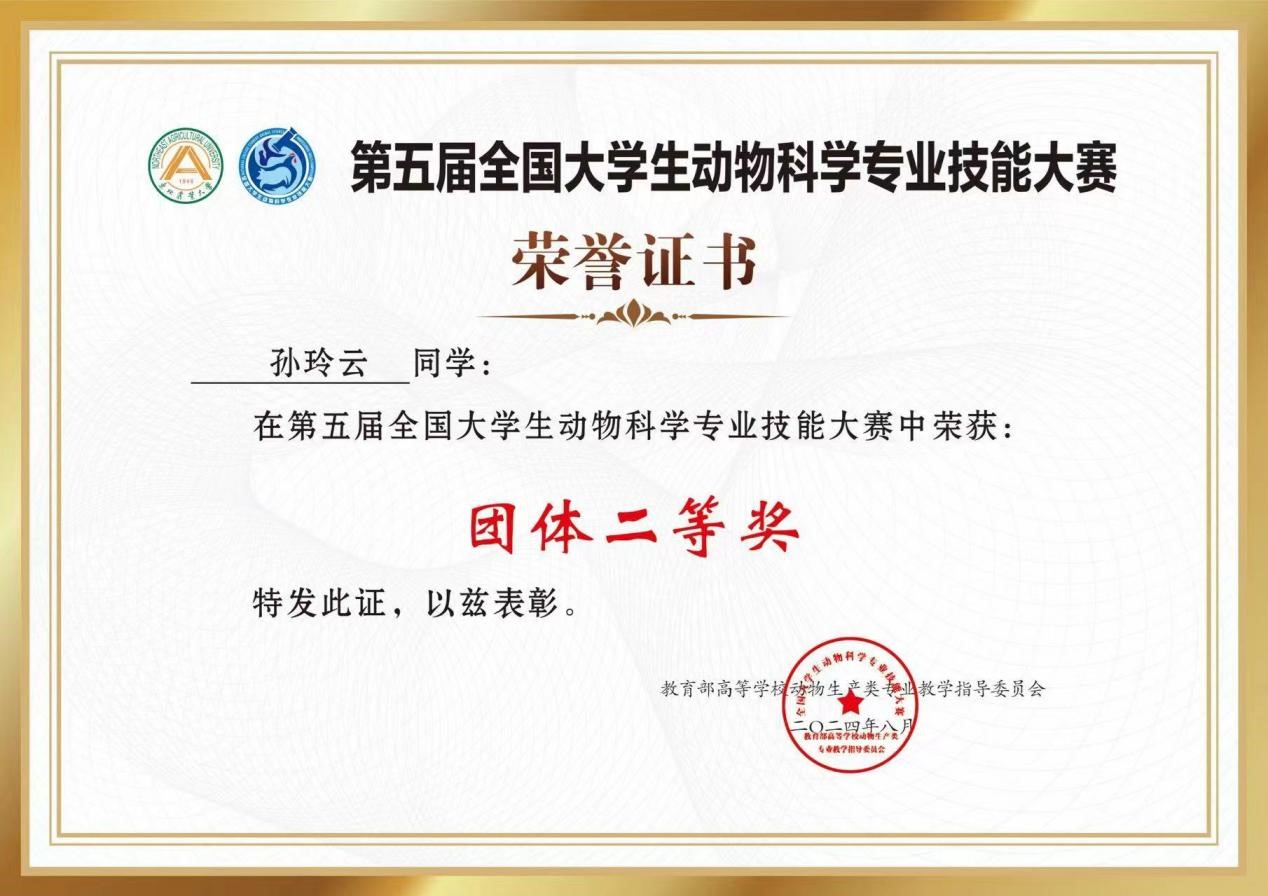 黄色网站 孙玲云同学在第五届全国大学生动物科学专业技能大赛中荣获二等奖,对该获奖同学予以祝贺表彰。