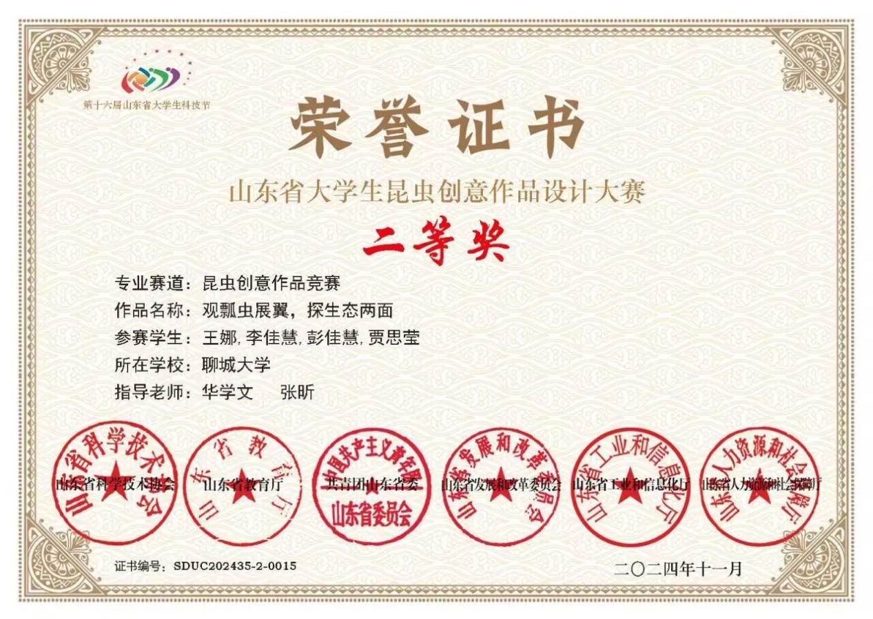 黄色网站 彭佳慧同学在山东省大学生昆虫创意作品设计大赛中获得了二等奖,对该获奖同学予以祝贺表彰。