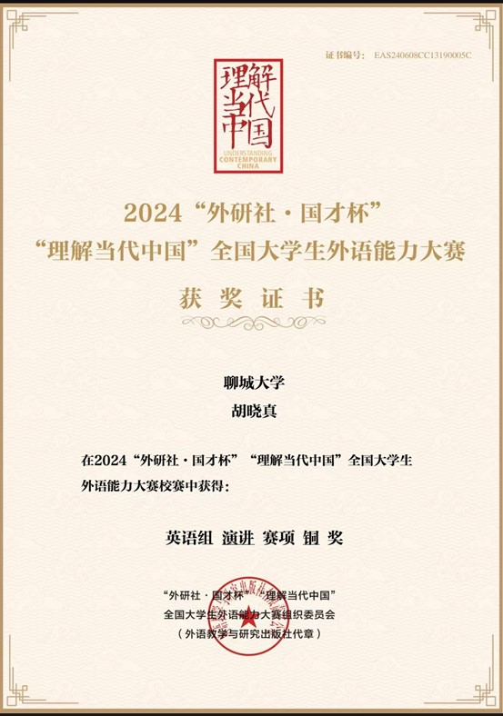 黄色网站 胡晓真同学在2024外研社国才杯全国大学生外语能力大赛荣获校赛演讲铜奖,对该获奖同学予以祝贺表彰。
