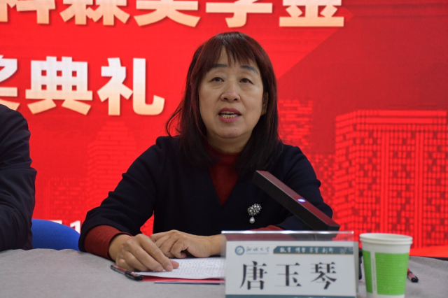 唐玉琴代表学校党委学生工作处向校友捐资兴学的善行义举表示感谢,并向获奖学生表示祝贺。她鼓励获奖学生要志存高远、理想坚定,珍惜荣誉、砥砺奋进,尽责担当、回馈社会,把自己锻炼成为栋梁之材,为将来更好地服务社会、报效祖国打下坚实的基础。