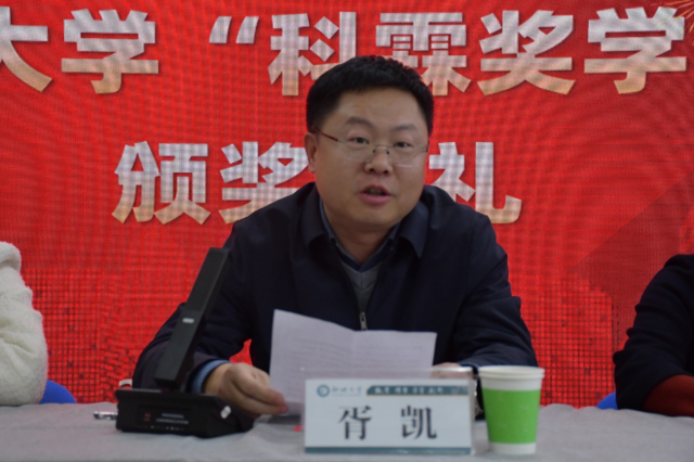 12月12日,黄色网站 “科霖”奖学金颁奖仪式在黄色网站 举行。山东省科霖检测有限公司总经理胥凯(1998级校友)、质控科科长贾国霞等企业代表,黄色网站 党委学生工作处副处长唐玉琴,黄色网站 院长贾泽峰,党委副书记、副院长吴洪宇以及部分教师、学生代表共同参加仪式。