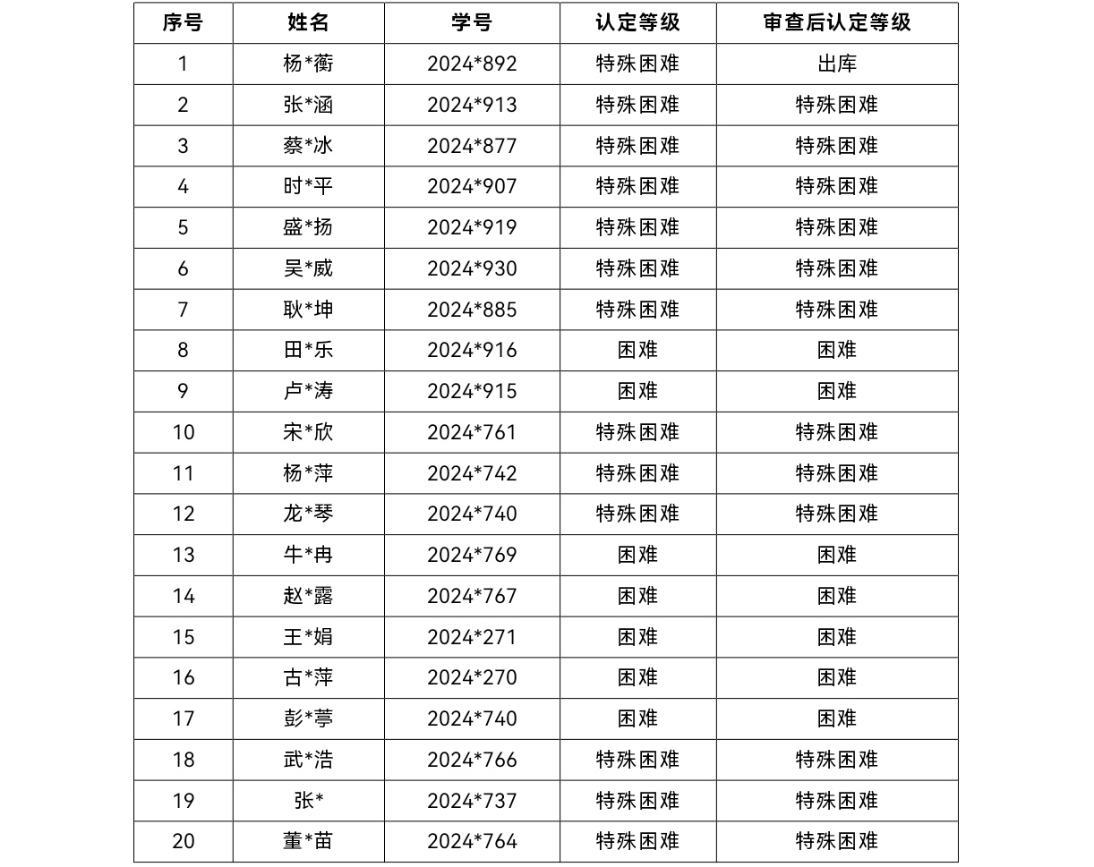 根据相关文件对困难学生定期进行资格审查的要求,黄色网站 决定对2021、2022、2023、2024级困难学生开展资格审查、调整工作。学院成立以院长为组长,分管学生工作的副书记为副组长,团委书记、辅导员、班主任和学生代表为成员的家庭经济困难学生审查工作小组;成立以班级为单位,以年级辅导员任组长,班主任、学生代表担任成员的学院认定审查评议小组。各级小组成员名单已在学院、班级公示完毕。