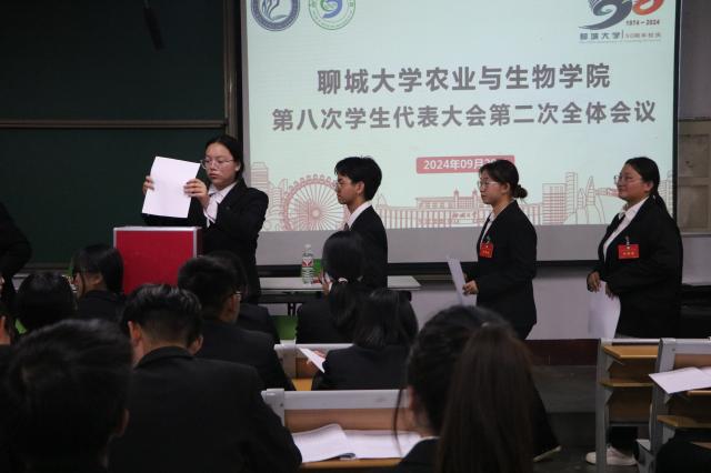 大会宣读并审议通过《黄色网站 学生会工作报告》及《聊城大黄色网站 学生会章程修正案》。最后,学生代表进行现场投票,本着公平、公正的原则,选出了黄色网站 2025届学生会轮值主席团成员及参加黄色网站 第十次学生代表大会代表,逯海凤、孙梦杰、马光玉为新一届学生会主席团成员。会议最后,王艺桦宣读《致全院青年学生的倡议书》,号召学院学生会全体同学要秉承“耕智尚学,生科致远”的院训,奋力书写为中国式现代化挺膺担当的青春篇章。在圆满完成各项议程后,大会在校歌中落幕。