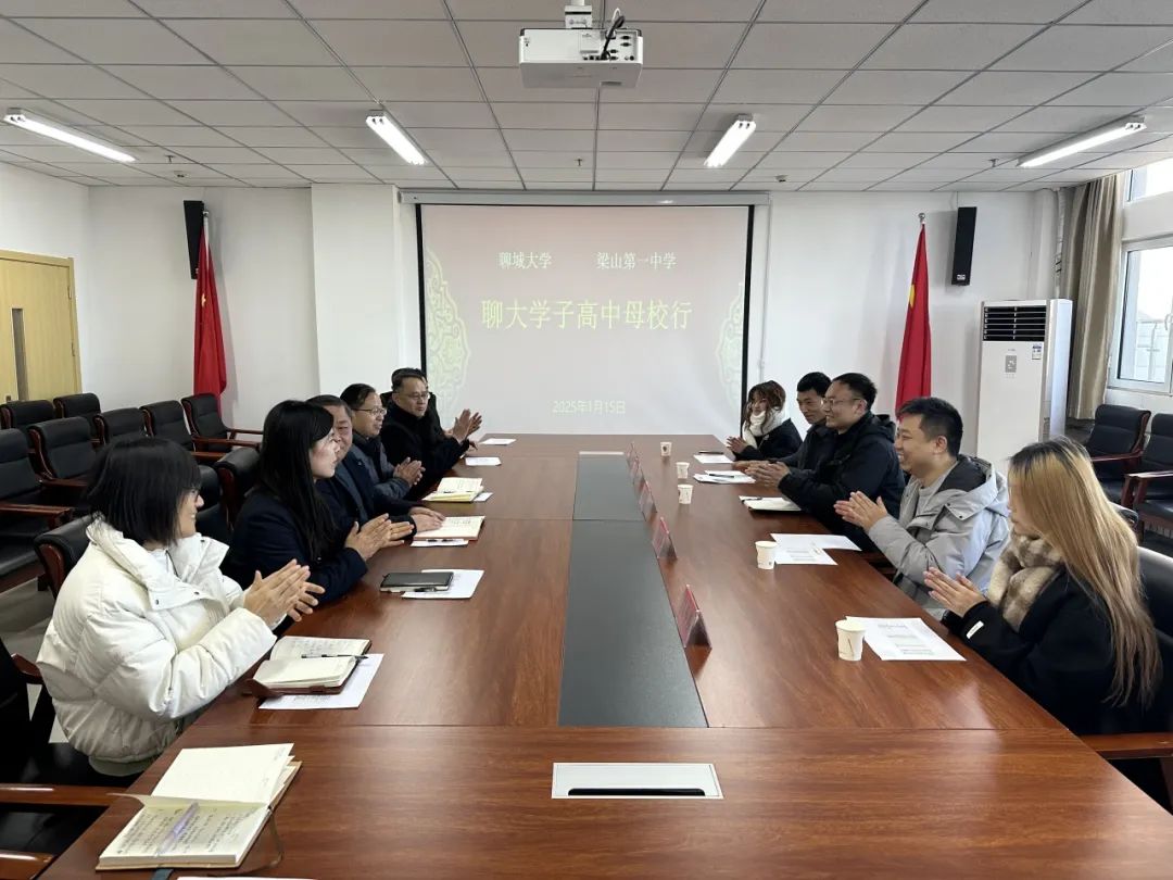 在宣讲正式拉开帷幕之前,服务队成员与梁山一中校领导开展了一场深入且富有成效的座谈会。会上,双方分别介绍了各自学校的办学理念、师资力量、教学成果等基本情况,增进了彼此间的了解与信任。